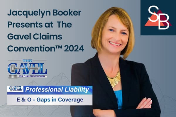 Jackie Booker presented with Kevin Griffiths from Scanlan Griffiths + Aldridge on a CLE session at The Gavel Claims Convention™ 2024 at The St. Regis Deer Valley Resort. Their session focused on the Professional Liability practice group and was titled “E & O – Gaps in Coverage.”
